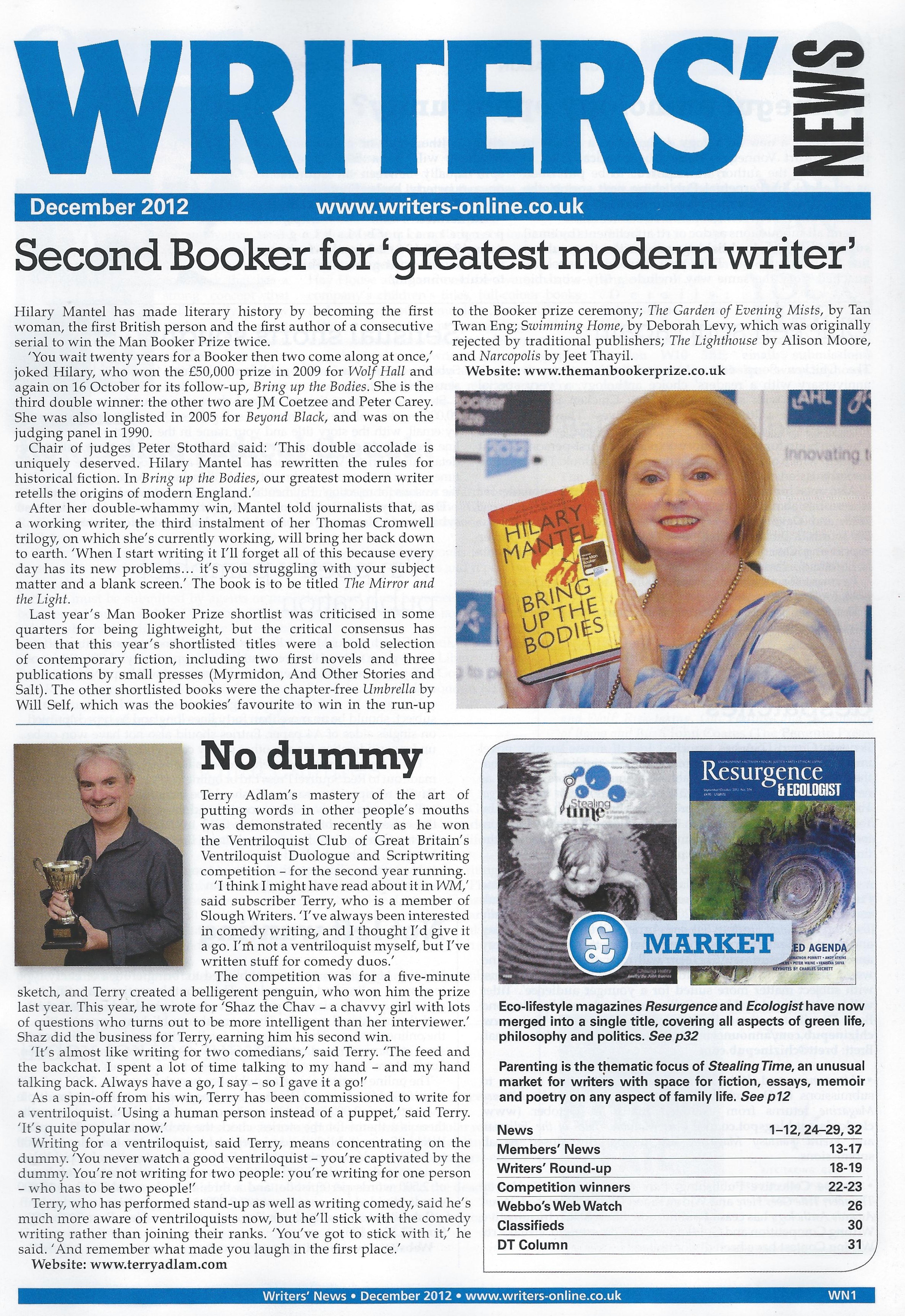For the second year running I came first in The Ventriloquist Club of Great Britain Second Annual Ventriloquist Duologue and Scriptwriting Competition 2012. My script can be read and enjoyed here.